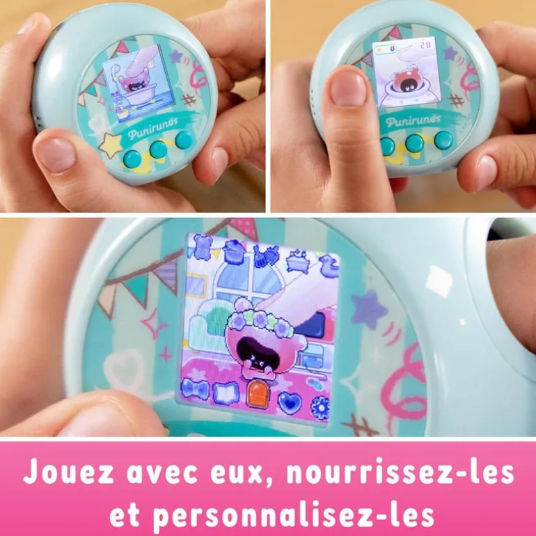 - Joue avec ton Punirunes en le touchant pour de vrai a lAinterieurdu boitier et en le voyant evoluer sur l’ecran couleur. 55personnages a collectionner, 6 jeux interactifs et differentesphases d’evolution. 3 piles LR03 fournies. Des 5 ansPermet de faire