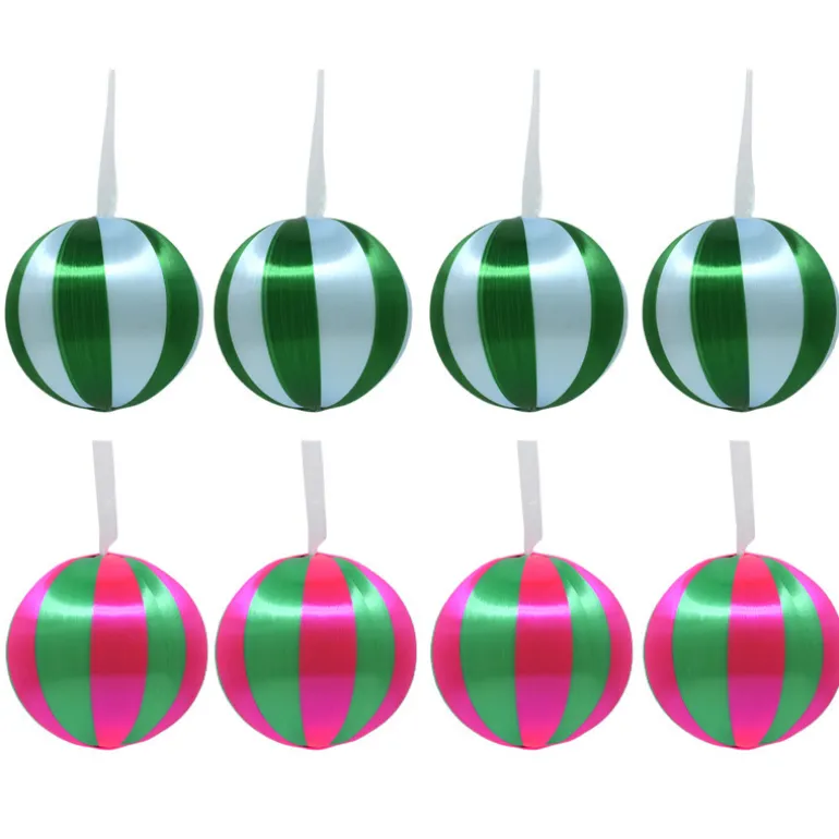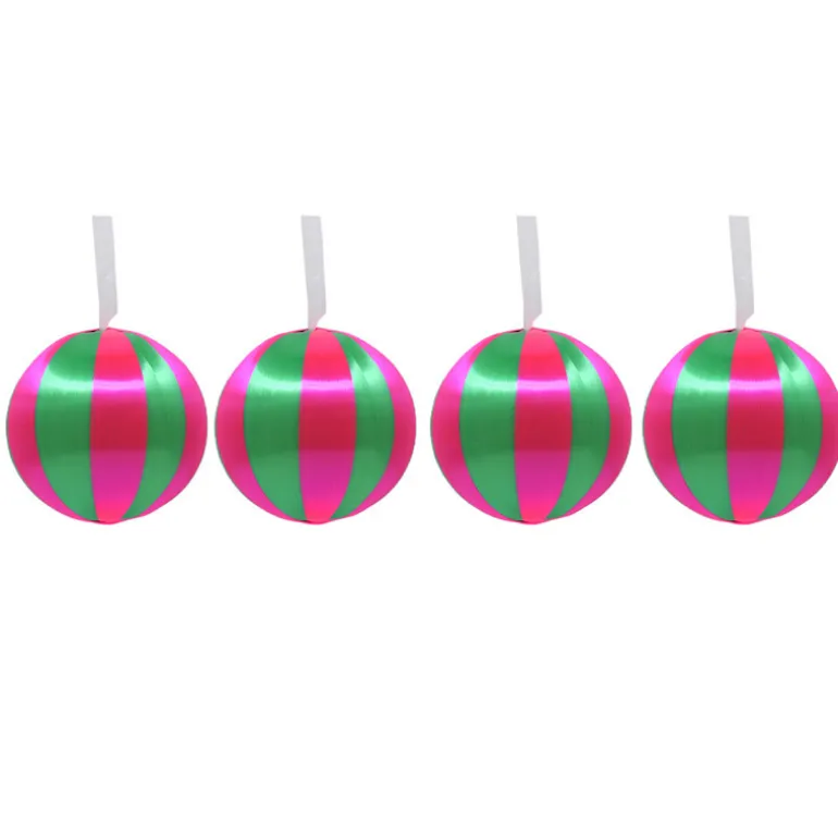 Pack de 4 boules 10cm strie rose