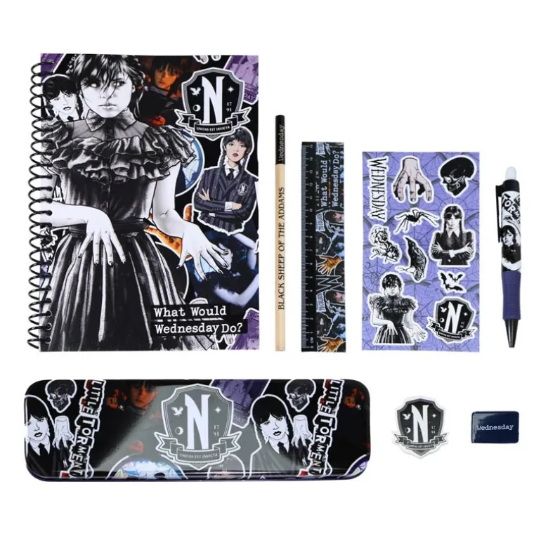 - Contient : carnet A5, etui a crayon, regle de 15cm, gomme, stylo, crayon, taille-crayon &feuilles d’autocollants